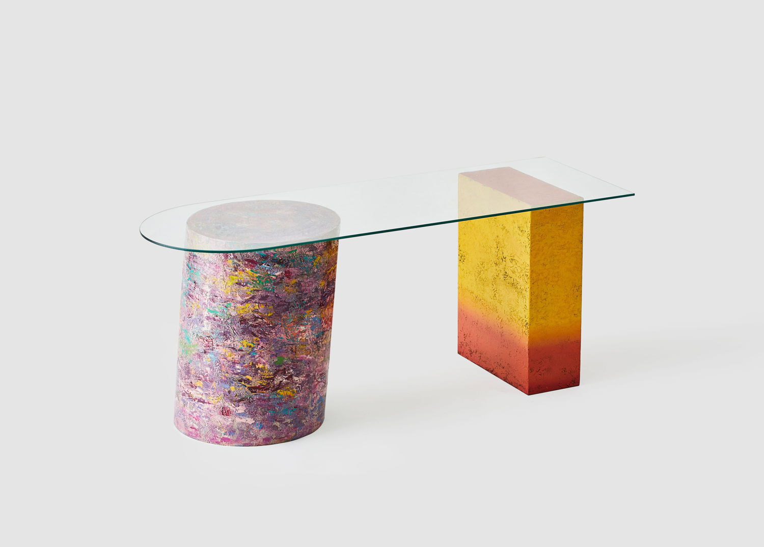 The Merge series, initially created in 2016, was inspired by the stone stacks found around a Buddhist temple. People made their wishes by carefully adding each stone to the stacks in a delicate balance. Ok Kim, the artist, sympathized with their desires and prayers, prompting her to explore the act of stacking as a formative language in her artworks. She “stacked” colors layer by layer with her own lacquering technique to symbolize accumulated wishes. Like a wish that becomes more apparent over time, the process deepens the lacquer’s transparency and luster. In addition, her collection includes paintings and multi-purpose sculptures that serve as art objects, side tables, or stools.