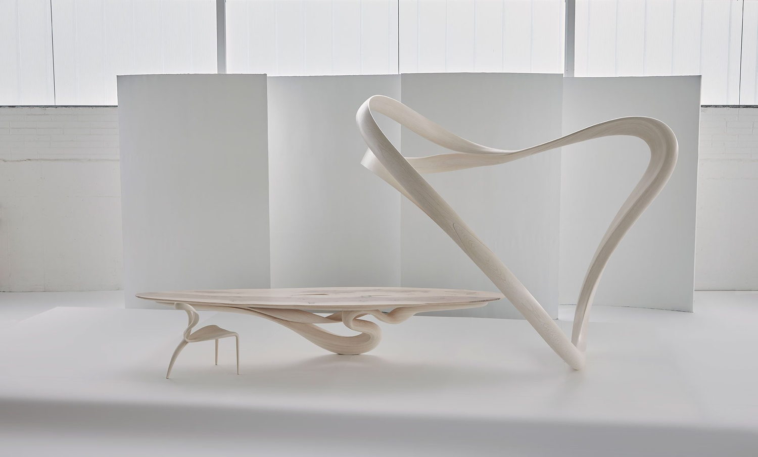 Five international galleries will present standalone booths in Shanghai, representing the very best of historic and contemporary design to a new audience. New York-based R & Company will showcase works by icons such as Wendell Castle and Gerrit Rietveld alongside new ceramics by Katie Stout. Galerie Patrick Seguin will present a number of classic works by iconic French designers including Jean Prouvé, demonstrating the gallery’s expertise inhighlighting the talents of French mid-century design in the international market. Joseph Walsh Studio presents a unique edition of the Lumenoria Dining Table, accompanied by two further pieces from the Rinn series: the Enignum Rinn Shelf and Enignum Rinn Chairs. The unique pieces are formed from white ash, white bone finish, and clear cast resin. ‘Rinn’ is a Gaelic word, which can be translated from the Irish language as a place, point or headland.